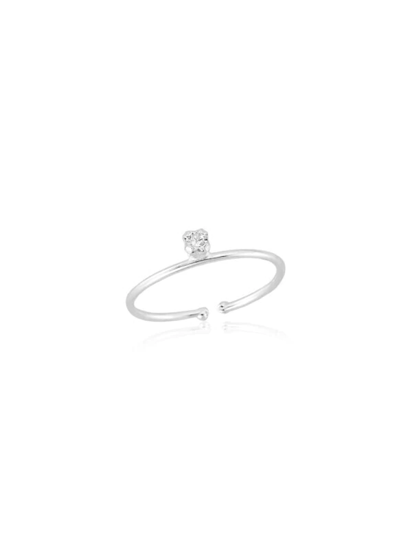 Anel liso fino, de tamanho ajustável em Prata 925, com uma zircônia cravejada.