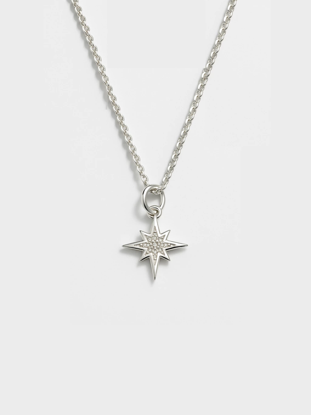 Uma das nossas peças mais vendidas, sua corrente fina de elos refletem a luz e já brilha por si só, com pingente de Estrela de 8 pontas, cravejado com zircônias.