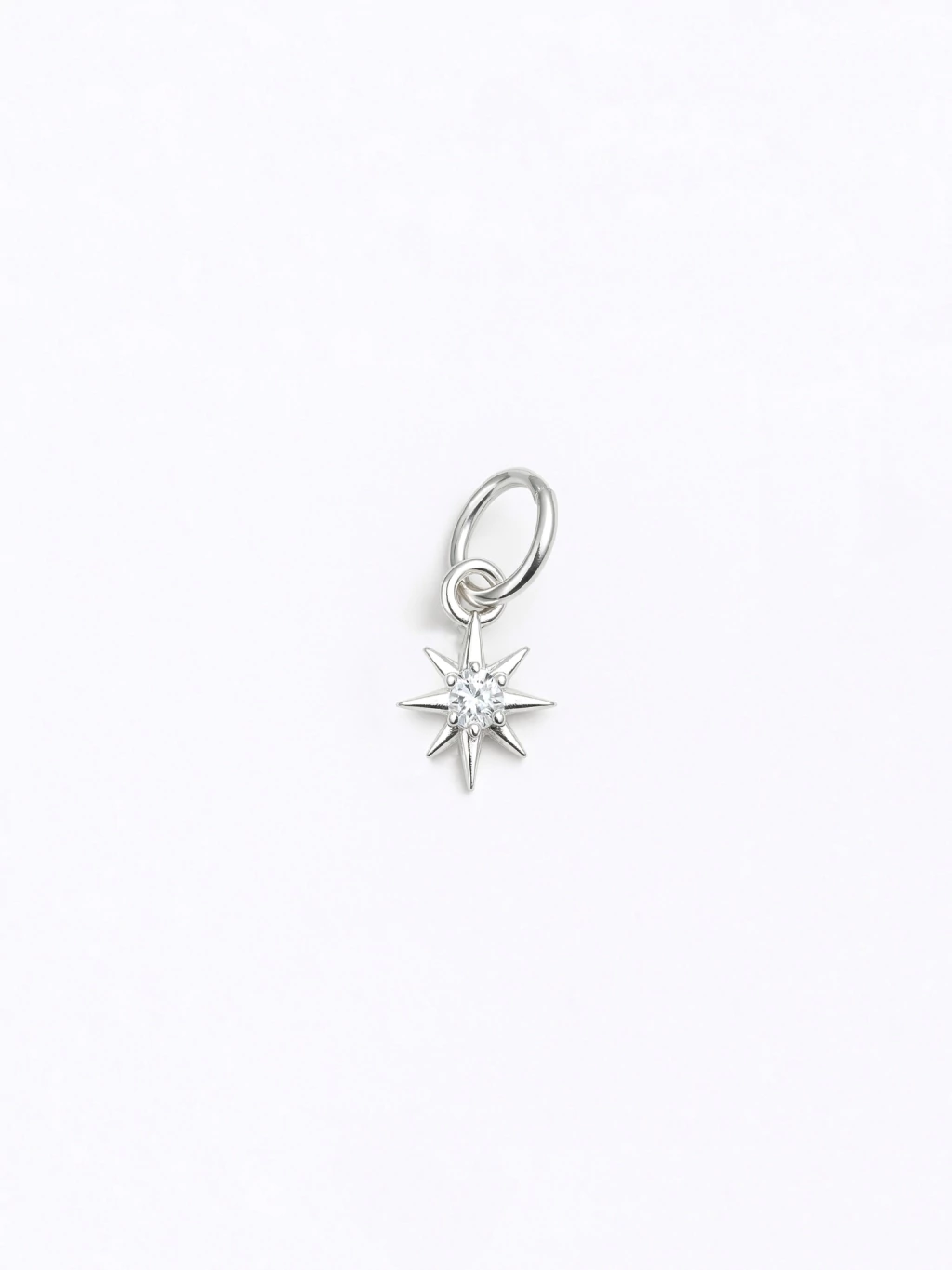 Pingente de Estrela de 8 pontas, cravejado com uma zircônia no centro. OBS. NÃO acompanha corrente.